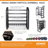 The Denali Vertical Dumbbell Rack stores and organizes our Urethane Cardio Dumbbells in the most attractive and handy way possible. This rack is part of our top of the line Denali Series of storage racks. Dumbbells are presented to clients vertically, making each dumbbell weight easier to see and grab and return. The vertical design also allows more dumbbells to fit- housing up to 60 pairs dumbbells, depending on the weight range. With the signature durable, “rounded” design, the Denali is the most ergonomical and lasting rack currently available.
