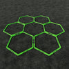 Build a flat agility ladder, complex hurdles, or any combination for speed or skill drills. Position these 19" diameter hex rings in custom training patterns to develop foot speed, agility, overall coordination, and mental focus. Attach the PVC clips to maintain ring position during drills. Lightweight design for convenient transport. Set includes twelve 1/4" thick rings, twelve PVC clips, and a carry bag. Good for indoor and outdoor training.