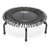 The 300 series from JumpSport offers arguably the quietest, most versatile, and long lasting rebounders. This series incorporates EnduroLast Cords for a smooth and consistent bounce, patent pending arched legs for stable support and ease of storage. In addition, the FlexBounce feature on this series allows you to customize the firmness of the mat. Rated for users up to 250lbs.