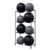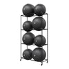 Brand New! Upgrade the look of your facility with our sleek, sturdy, updated take on the standard PVC stability ball rack. The powder coated metal piping is lightweight enough for easy rolling, but won't crack or separate like the plastic versions. This freestanding rack can accommodate eight stability balls (55,65, and 75 cm balls), and includes locking casters! Balls sold separately. Kit available. Assembly required. Black. Metal.
