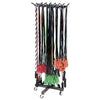EASY ACCESS! Rack allows easy access to tubing and jump ropes while storing the equipment neatly in one place. 14 prongs hold up to 100 tubes or 400 standard jump ropes. Four casters for mobility. Assembly required.Tubing and jump ropes sold separately.