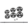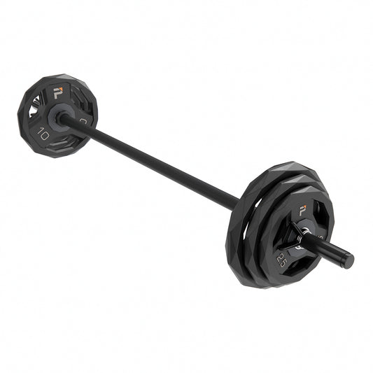 The new neutral black/gray plate color fits any home gym aesthetic and doubles nicely for off-bar work—use the integrated grips for farmer carries, core work, and accessory moves. Durable urethane shrugs off daily training, wipes clean fast, and is quieter than clanky metal, making it ideal for early-morning or apartment workouts. Whether you’re following a pump-style class, strength circuit, or quick 20-minute burn, this set is purpose-built for fast transitions, small spaces, and big results.