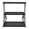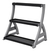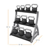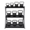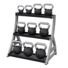 Perfect for personal training studios or small spaces. Keep up to twelve kettlebells organized and off the floor with this 3-tier rack. The rubber mats on the shelves reduce noise when putting the kettlebells away and protects them from additional wear and tear. The back lip on each shelf of the rack prevents your kettlebells from falling through. Power Systems kettlebells are sold separately. Some assembly required. 31" L x 23" deep x 33" H.