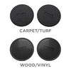 Choose the option best suited for your space or training surface. Carpet version has a durable, cushioned foam top and a smooth PVC bottom to slide across carpet or turf surfaces. The hardwood/vinyl flooring option has a textured vinyl top and soft, felt bottom for smooth movement and floor protection. Both versions have a textured, non-slip top surface to keep feet or hands in position during movements.